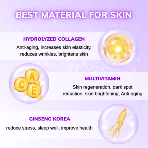 - Maintain youthful skin: Increase elasticity, reduce wrinkles, help skin bright and healthy.