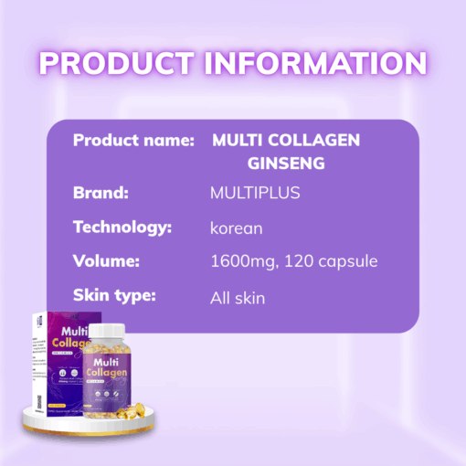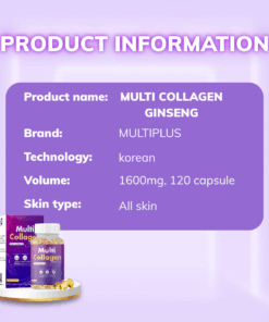Multi Collagen Ginseng is an outstanding improvement product, combining 5 types of collagen with Korean ginseng and essential nutrients, providing comprehensive care from skin, hair, nails to joints and overall health.